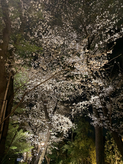 「さくらまつり」中ということで、夜間にライトアップが行われていたのですが、夜もリハが続いていました(↓)。