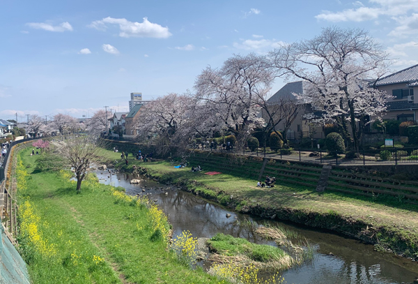 翌日曜日は快晴! 待ってました、ということで野川沿いをお散歩(↓)。菜の花も咲き始めています。