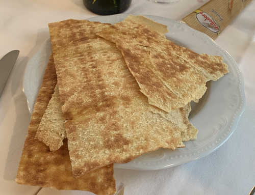 グリッシーニに加えて、パリパリのおつまみ(↓)が出てきました。コペルト(テーブルチャージ)に含まれているそうなので、遠慮なくもぐもぐ。