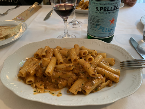 夜にディナーの予定が入っているので、昼はパスタのみにしました。私は大好きなリガトーニ(↓)。しっかりアルデンテ。
