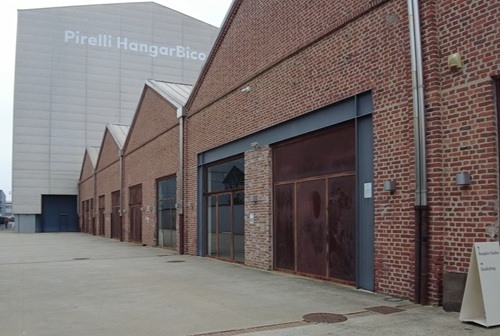 彼女の運転で向かったのは、世界的なタイヤメーカー、ピレリ社の財団が運営する非営利現代アートセンター、ピレリ・ハンガービコッカ。さっき駅前でタワーを見た会社ですね。ちょうど日本人アーティストの毛利悠子さんの個展が開かれていました。