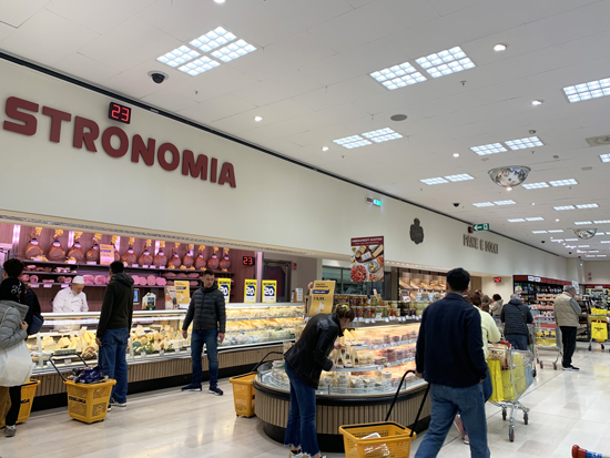 こんなに進化しているのに、肉やチーズ、お惣菜を買うコーナーではやっぱり店員さんと買い物客が直に話して「どれをどのくらい買うか」を伝えている(↓)のが、何かイタリアだなあと思いました。ここは譲れないんだろうな。