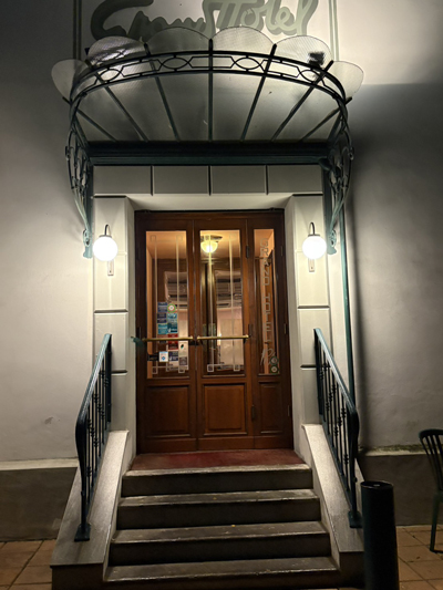 Milano Romolo駅で下車、降り出した雨の中、ミラノのお洒落地区ナヴィリオ運河近くのOsteria Grand Hotel(↓)へ。