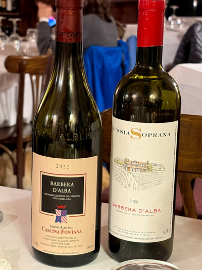 ワインはこの2本(↓)。バルベーラ・ダルバを使った赤ワインをお店の人に選んでもらいました。