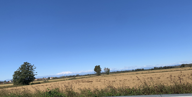 ミラノ2日目はびっくりするぐらいの晴天で、私はMさんに車で近郊の町に連れて行ってもらいました。車窓からアルプスが見える!(↓)