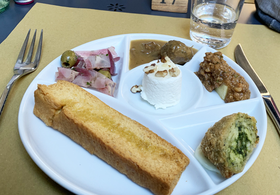 定食形式で、プリモピアットとセコンドピアットを選ぶスタイル。アンティパスト(↓)が彩り豊かでとてもおいしかったです。