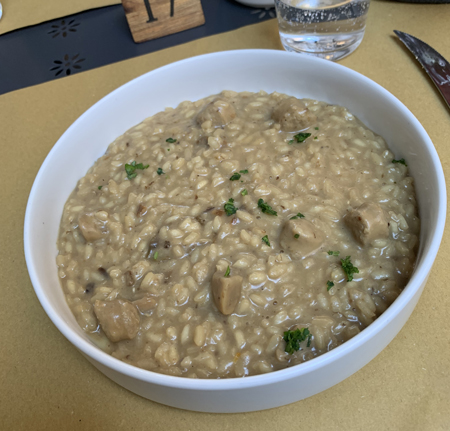 真ん中にあるのはフレッシュチーズ。その向こうの肉団子もおいしかった! プリモピアットはポルチーニのリゾット(↓)。