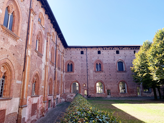 ミラノ同様、ヴィスコンティ家からスフォルツァ家へと支配者が変わったこの町の中心には、両家が手を加えたスフォルツェスコ城(↓)があります。