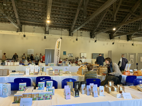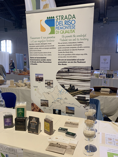 食後の腹ごなしにお城の外を見て回ると、イタリア産のお米の見本市が行われていました(↓)。イタリアのノヴァーラ地区は米どころで、近年は日本米も作られているそうです。