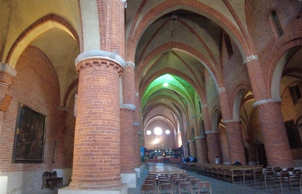 清貧主義をモットーとするシトー派の修道院なので、ヴィジェーヴァノの大聖堂とは対照的に、内部は非常に質素です(↓)。12世紀創建。後に法王レオ10世となるジョヴァンニ・デ・メディチが修道院長を務めるなど、一時は確固たる地位を築きましたが、フランス革命時に修道院が廃止されてしまいます。再開されたのは20世紀に入ってからで、今世紀に入ってようやく環境が整ったそうです。