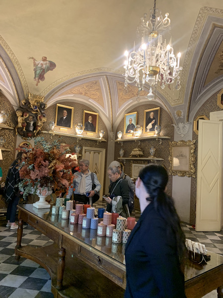 この天井画の下にお店(↓)があります。商品のお値段はそれはそれはお高いのですが、この雰囲気に納得させられてしまう……。