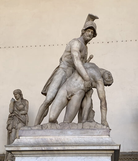 こちらはギリシャ彫刻をローマ時代にコピーしたもので、アキレウスの遺体を抱くアイアス(↓)。2人ともトロイ戦争の英雄ですが、アキレウスは唯一の弱点であるかかとを射られて亡くなってしまいます。