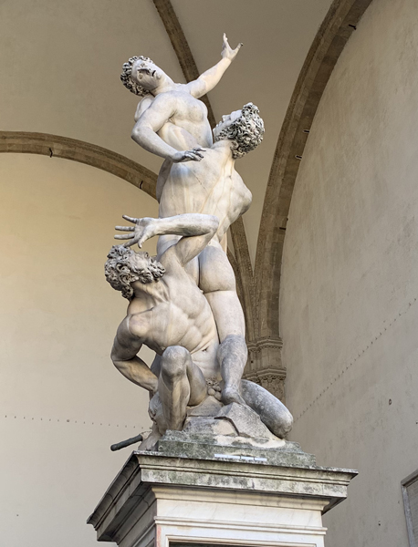 こちらもジャンボローニャによるサビニの女たちの略奪(↓)。ローマの建国者であるロムルスが女性不足に陥った祖国のため、近隣のサビニに住む女性たちを祭りを装って誘い捕えた場面を表しています。おい、ロムルス……。